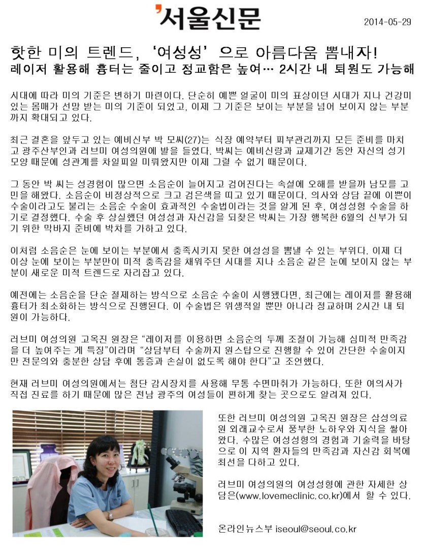 핫한 미의 트렌드,‘여성성’으로 아름다움 뽐내자! <서울일보2014.5.29>