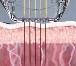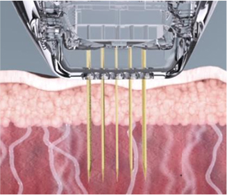 2가지 타입의 Needle-tip 1pin 또는 4pin을 이용하여 에너지를 집중적으로 전달하는 시술로 피부를 침투하여 피지선(샘)에 직접적으로 강한 에너지를 조사하여 응고 및 파괴를 통해 트러블 개선에 도움을 줍니다.